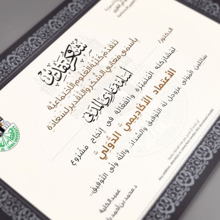 تصميم شهادة شكر وتقدير جامعة ام القرى
